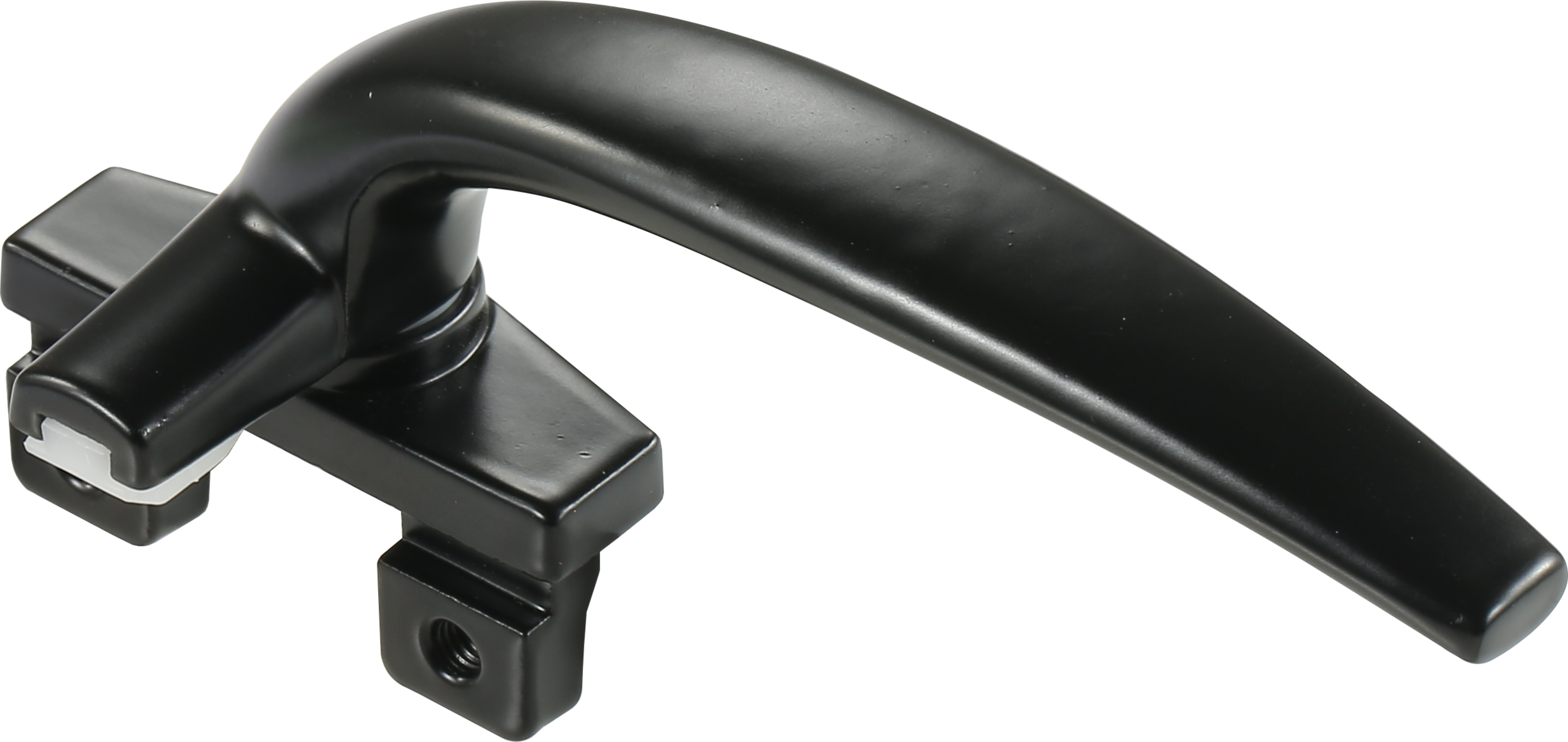 Изогнутый алюминиевый рычаг обеспечивает удобный захват и плавный ход, позволяя запирать и открывать створку с минимальными усилиями. Встроенный нейлоновый наконечник защелки соединяется с ответной планкой на раме, обеспечивая надежное запирание в одной точке, которое подходит как для жилых, так и для легких коммерческих алюминиевых окон.