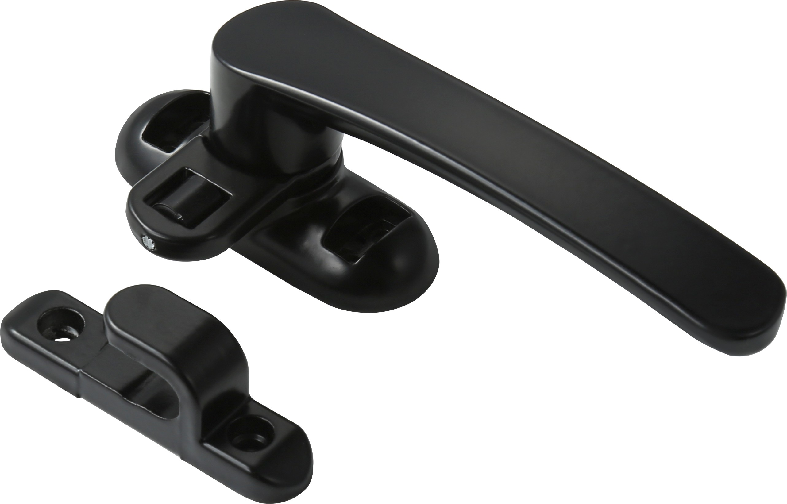 В этой модели используется одна точка запирания с подпружиненной роликовой защелкой. Когда створка закрыта, ролик плавно входит в ответную планку и плотно прижимает створку к раме, улучшая герметизацию воздуха и воды. Соответствующий держатель включен в комплект для быстрого выравнивания новых окон или модифицированных замен.